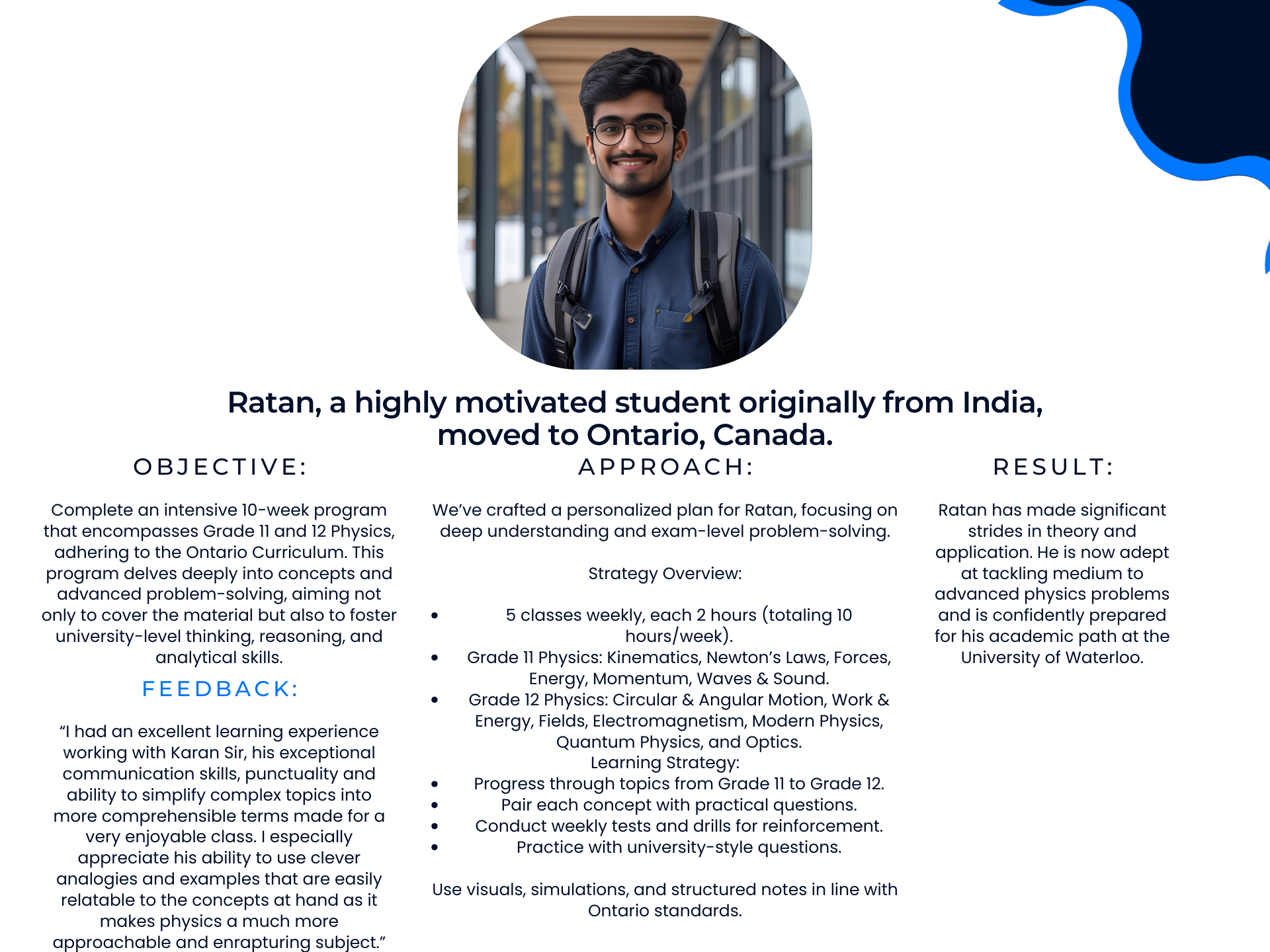 Ratan strengthened his senior Physics foundations and exam strategies with Future Proof Education — and was accepted into the prestigious BSc in Physics & Astronomy program at the University of Waterloo (Fall 2025).